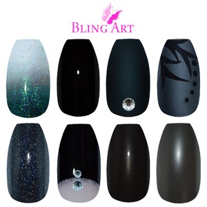 Details About Bling Art Coffin Black False Nails Glitter Matte Gel Fake 24 Tips Medium Glue