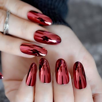 Amazon Com Jienie Gorgeous Mirror Acrylic Nails Red Wine Round